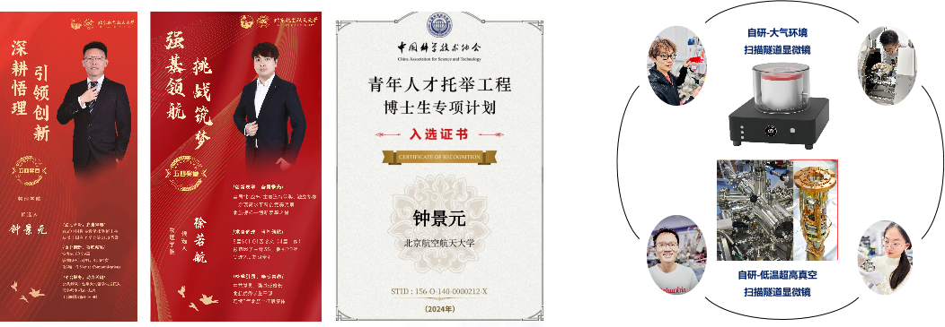 持续建设育人平台,学业导师6人,研究生思政导师4人,充分发挥导师在导学、导心、导向、导行方面的作用。团队本科生在二维材料、扫描隧道显微镜开发、低维异质结构研究等领域开展研究工作,获得包括第十六届、十八届、十九届“挑战杯”全国大学生课外学术科技作品竞赛特等奖三项(破全国纪录)、第十二届北京市大学生物理实验竞赛一等奖、北航“冯如杯”学生学术科技作品竞赛一等奖等国家级奖项3项,省部级10项。过去三年,团队研究生获得“青年托举”项目、国家奖学金、北京市优秀毕业生、北航“五四”奖章、国家奖学金、新葡萄88805官网优秀博士一等奖学金、新葡萄88805官网博士研究生卓越学术基金等项目及荣誉50余项。